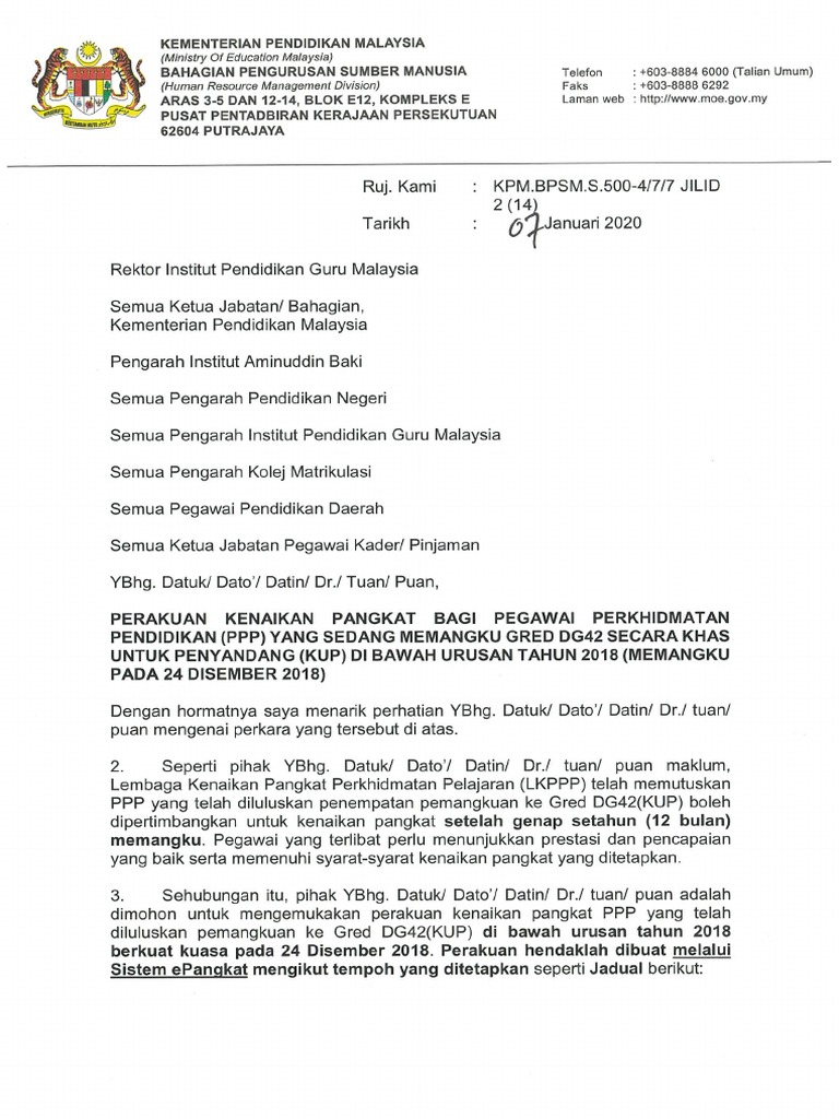 Surat Siaran Iklan Kenaikan Pangkat Gred Dg42 Urusan Tahun 2018 Pdf